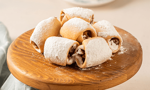 Taze elma parçacıkları ve pudra şekeri ile hazırlanan elmalı kurabiye
